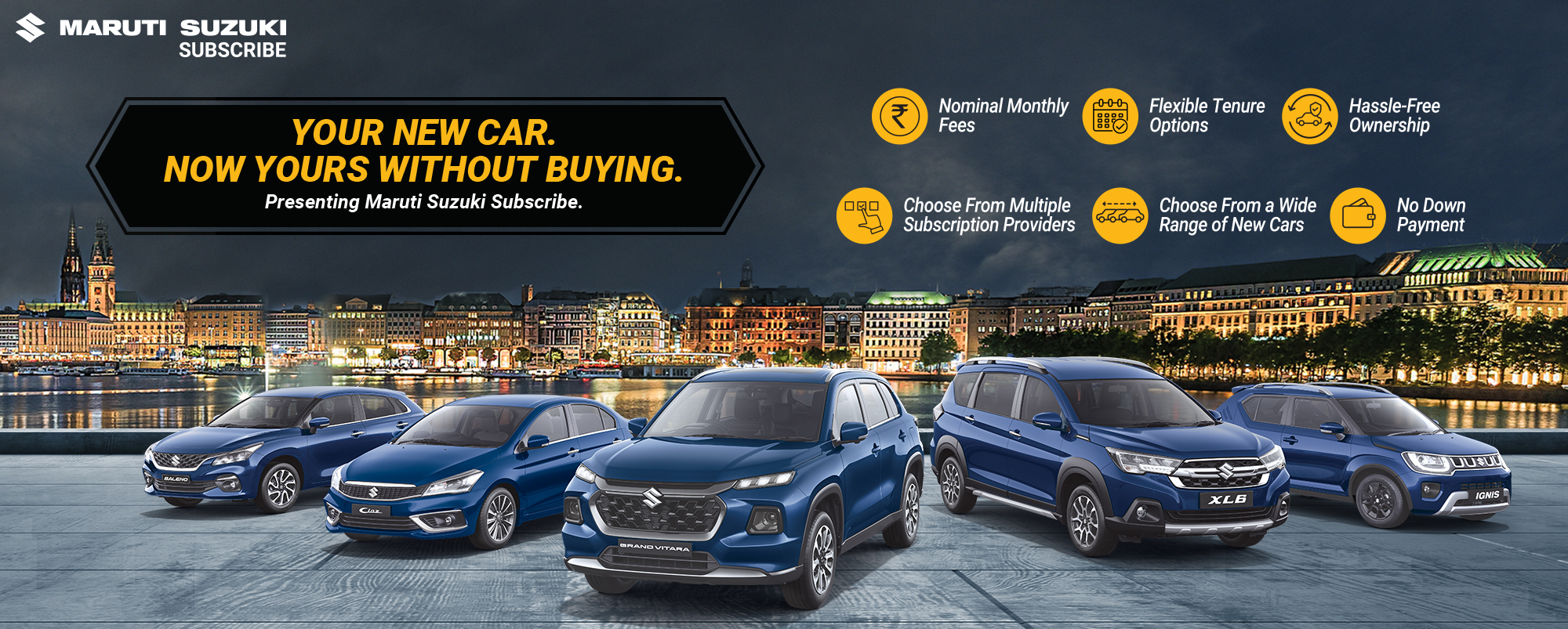 Your search for Maruti Suzuki car subscription near me has brought you to M Square Motors, Kotra Road. M Square Motors, Kotra Road, Raigarh welcomes you to explore a wide range of Nexa cars for a seamless car subscription process.